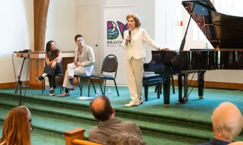 ¡Bravo! Vail se enorgullece de identificar y mostrar a destacados intérpretes en las primeras etapas de sus carreras. Los becarios de piano y los músicos de cámara residentes obtienen valiosas oportunidades de tocar, enseñar y aprender codo con codo con músicos de renombre del Festival, y el Programa de Prácticas Jane & Gary Bomba es insuperable por su reputación de impulsar a los participantes hacia carreras de éxito en la administración de las artes y la gestión de organizaciones sin ánimo de lucro.