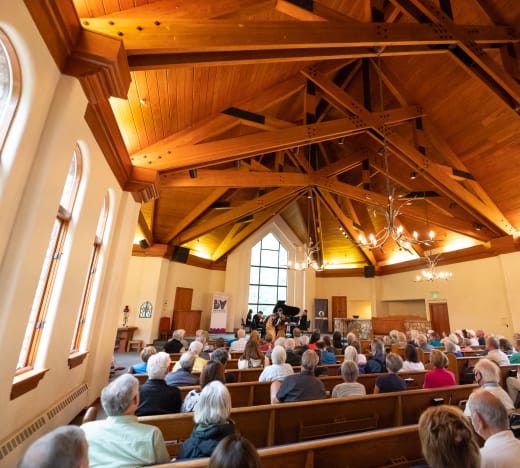 GRATISEstos conciertos de música de cámara y recitales en solitario de una hora de duración son interpretados por conjuntos y músicos visitantes en lugares únicos de la comunidad, como la Capilla Interreligiosa de Edwards, la Capilla Interreligiosa de Vail, Vail Health, el banco inferior del Parque Ford y la Biblioteca Pública de Gypsum.